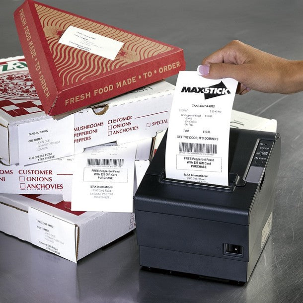 Les bobines de papier thermique linerless (ou linerfree) de la marque MaxStick sont spécialement conçues pour offrir une impression durable et écologique, sans le support en silicone habituel. Idéales pour les points de vente, restaurants, traiteurs, et autres environnements de vente au détail, elles permettent une réduction des déchets et une impression haute qualité adaptée à une large gamme d'applications.