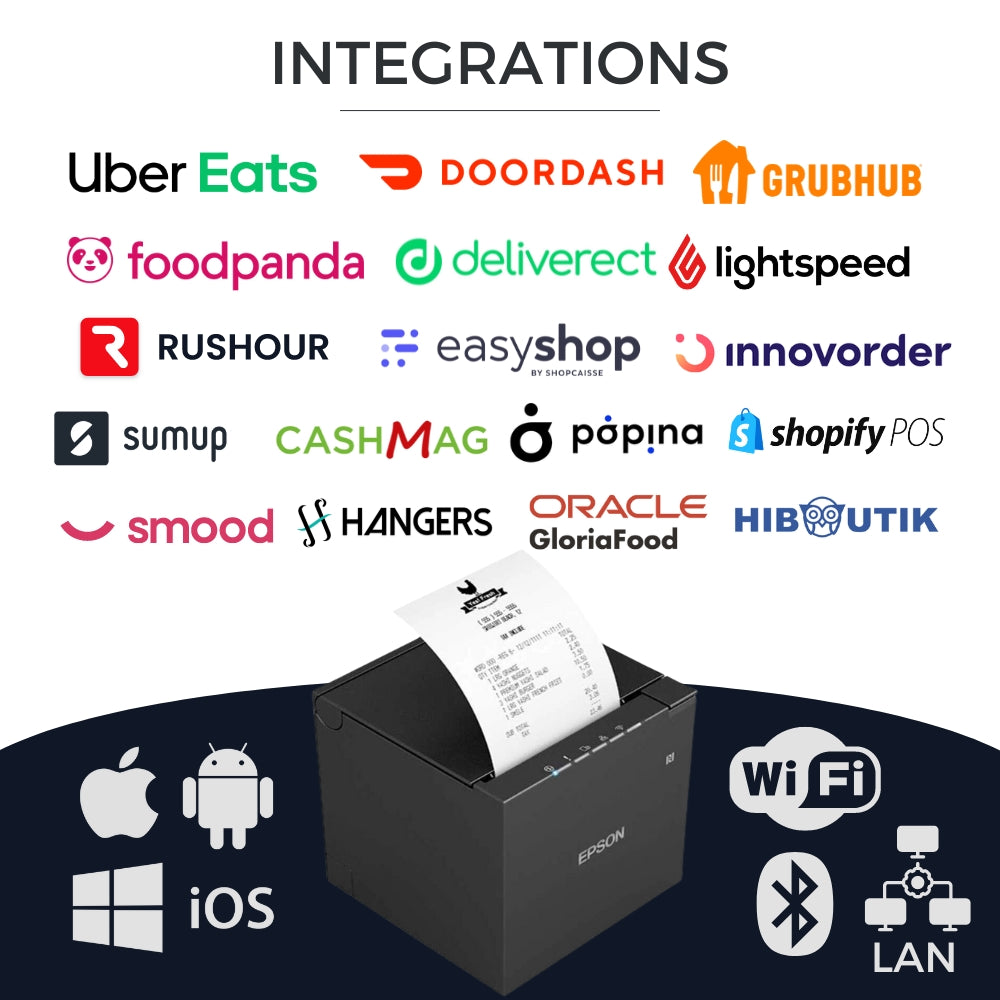 Optimisez votre point de vente avec l’imprimante Epson TM-m30, la solution d’impression thermique compacte, élégante et 100% compatible Popina via Bluetooth.